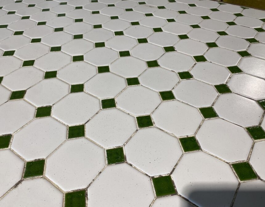 Vintage tafel met wit/groen motief