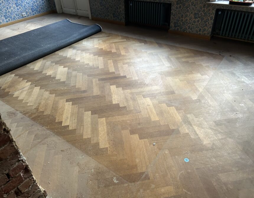 Parketvloer visgraat (+/- 22m²)Plankjes 39x7.2cm Kan uitgebroken worden voor al de rest op afspraak