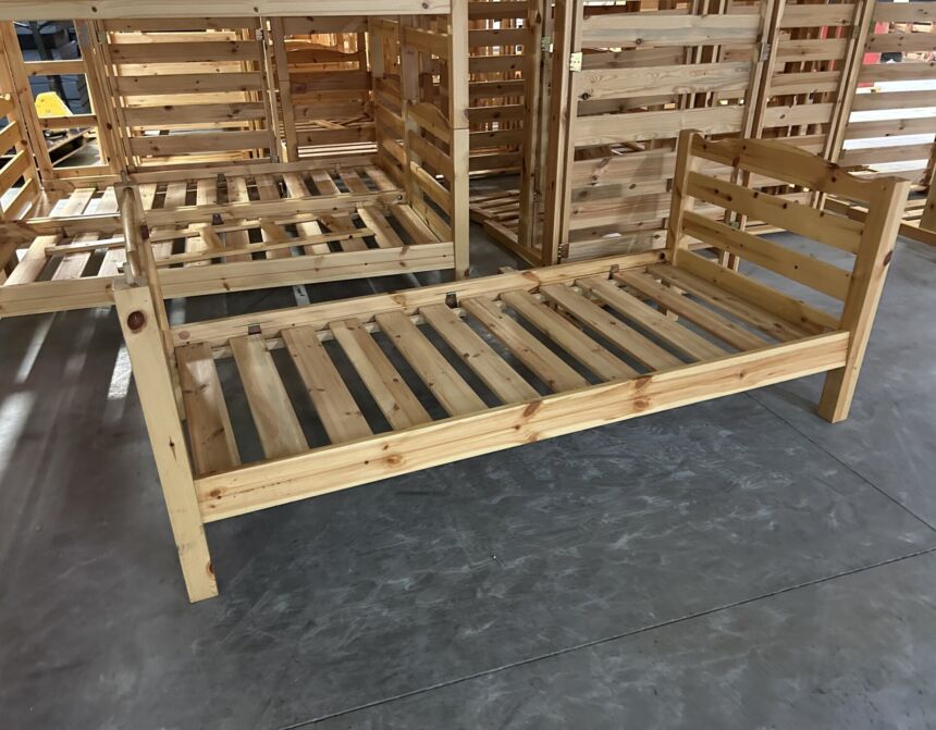 Eenpersoonsbedden + matrassen (20st) NIEUWMogelijkheid tot maken van stapelbedden Bedden en matrassen zijn nieuw in de verpakking, zelf te m...