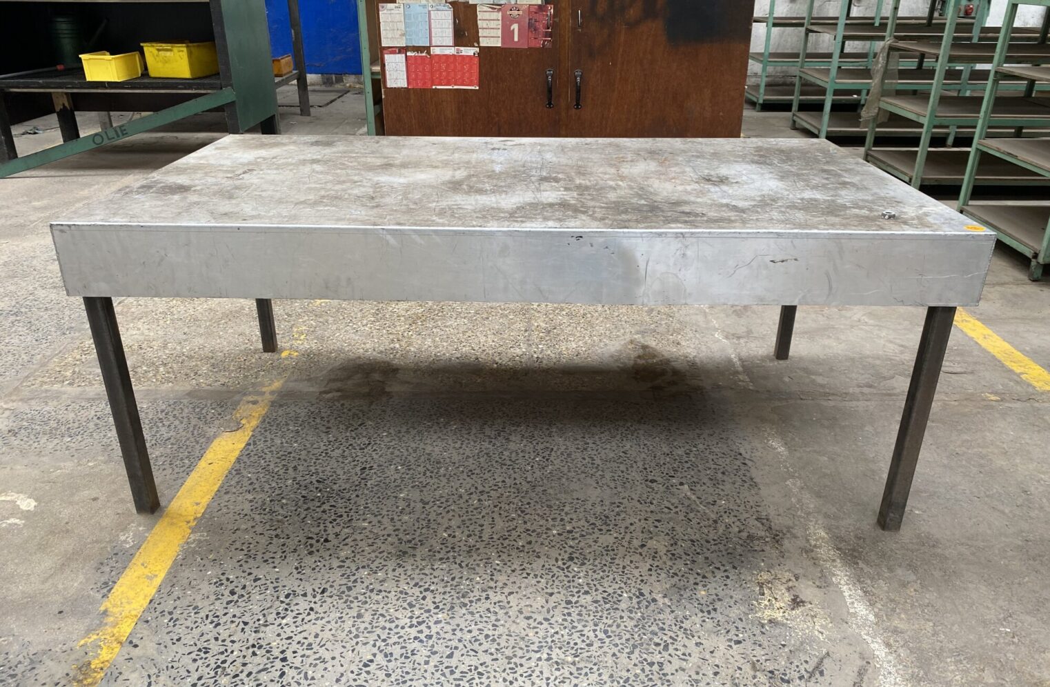 Alu tafel met ijzeren onderstel, tablet afneembaar