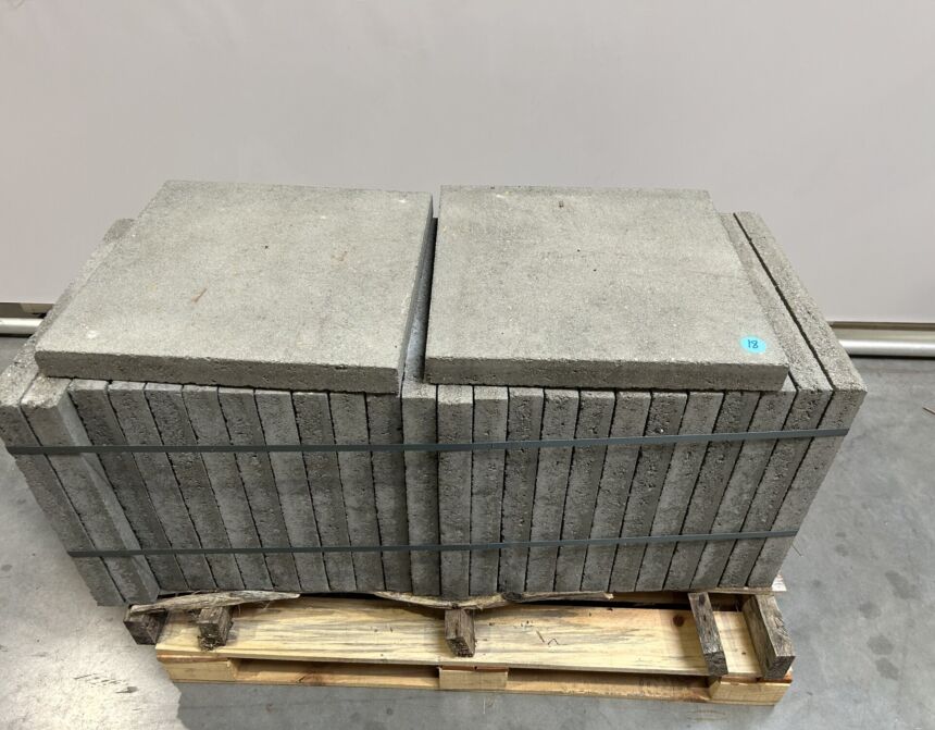 Lot betontegels granito's +/- 16m²beige met grijze spikkel ; 30 x 30 x2,5 180 stuks