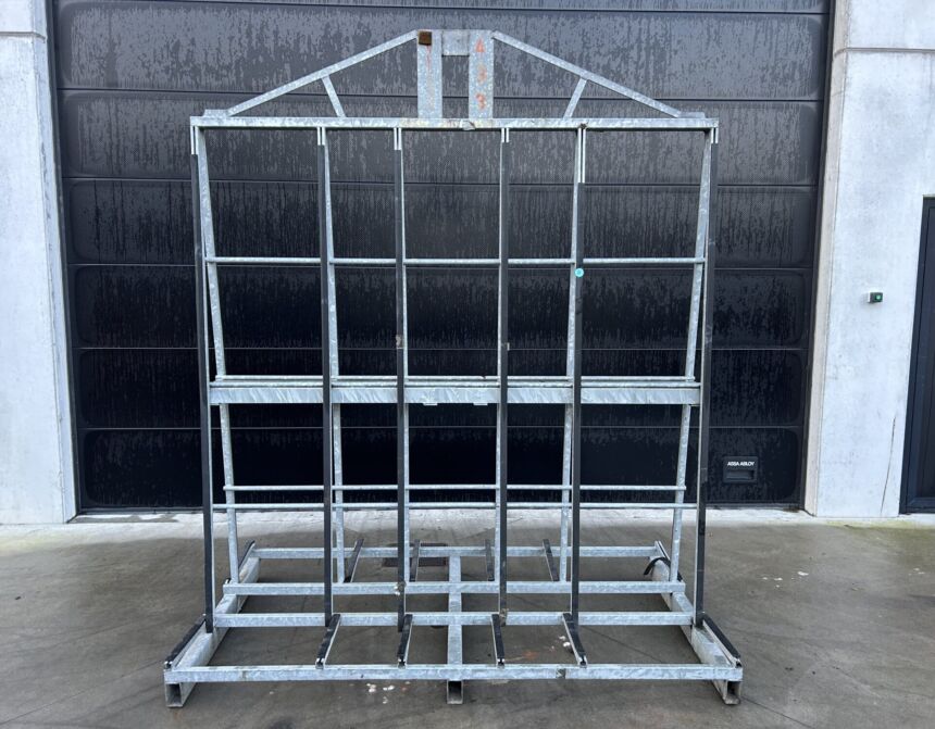 lot 31 Metalen galvanisé glasbokBreedte: 2,60M hoogte 2,30M 35cm diep (beide zijdes)