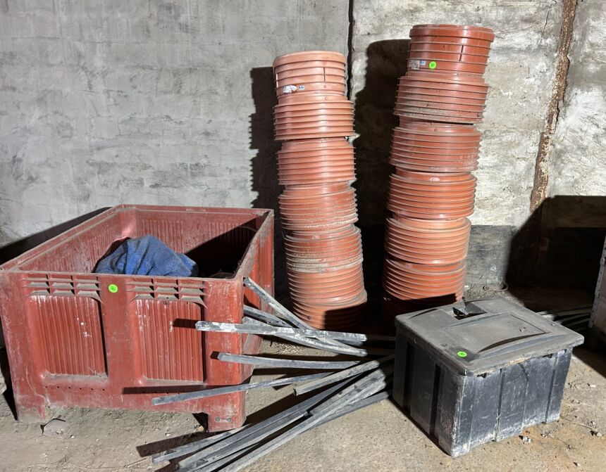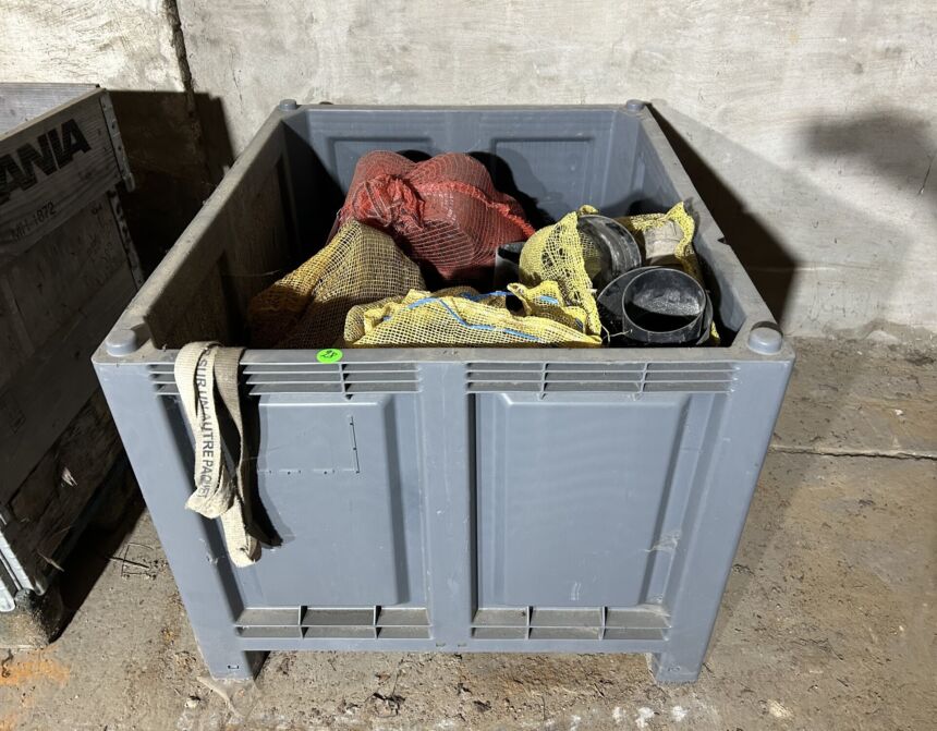 Diverse controleputten, koppelingen, PVCdiverse koppelingen, controleputjes, rode PVC bak met koppelingen