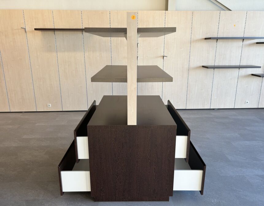 Ladekasten (2) - Presentatiemeubel met lades2 zijdes met banken en lades 4 lades + 4 verplaatsbare banken Afm: 1,20M breed x 85cm diep x 86 e...